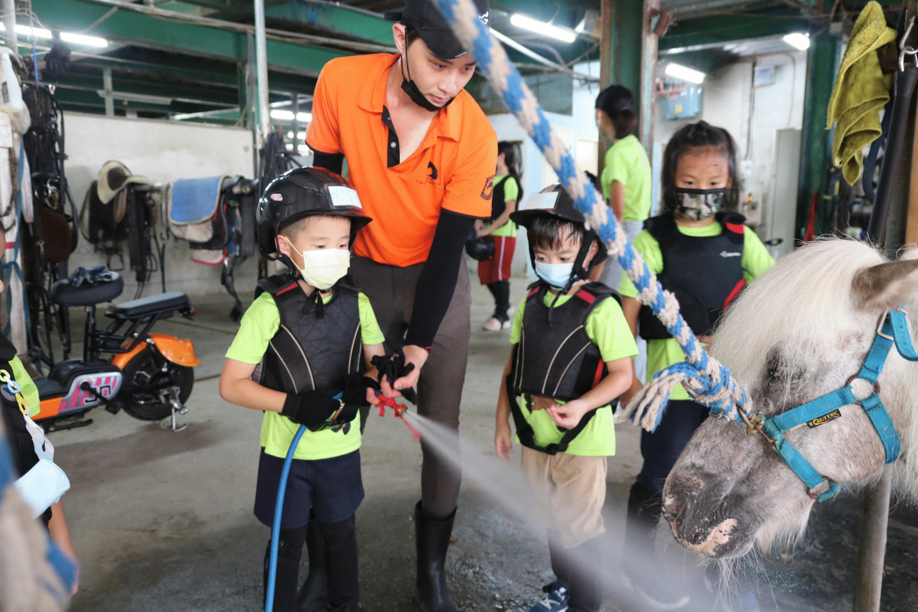 ▲小小馬術競賽體驗比賽 ▲分組教學,互相扶持 ▲馬廄實習-洗馬